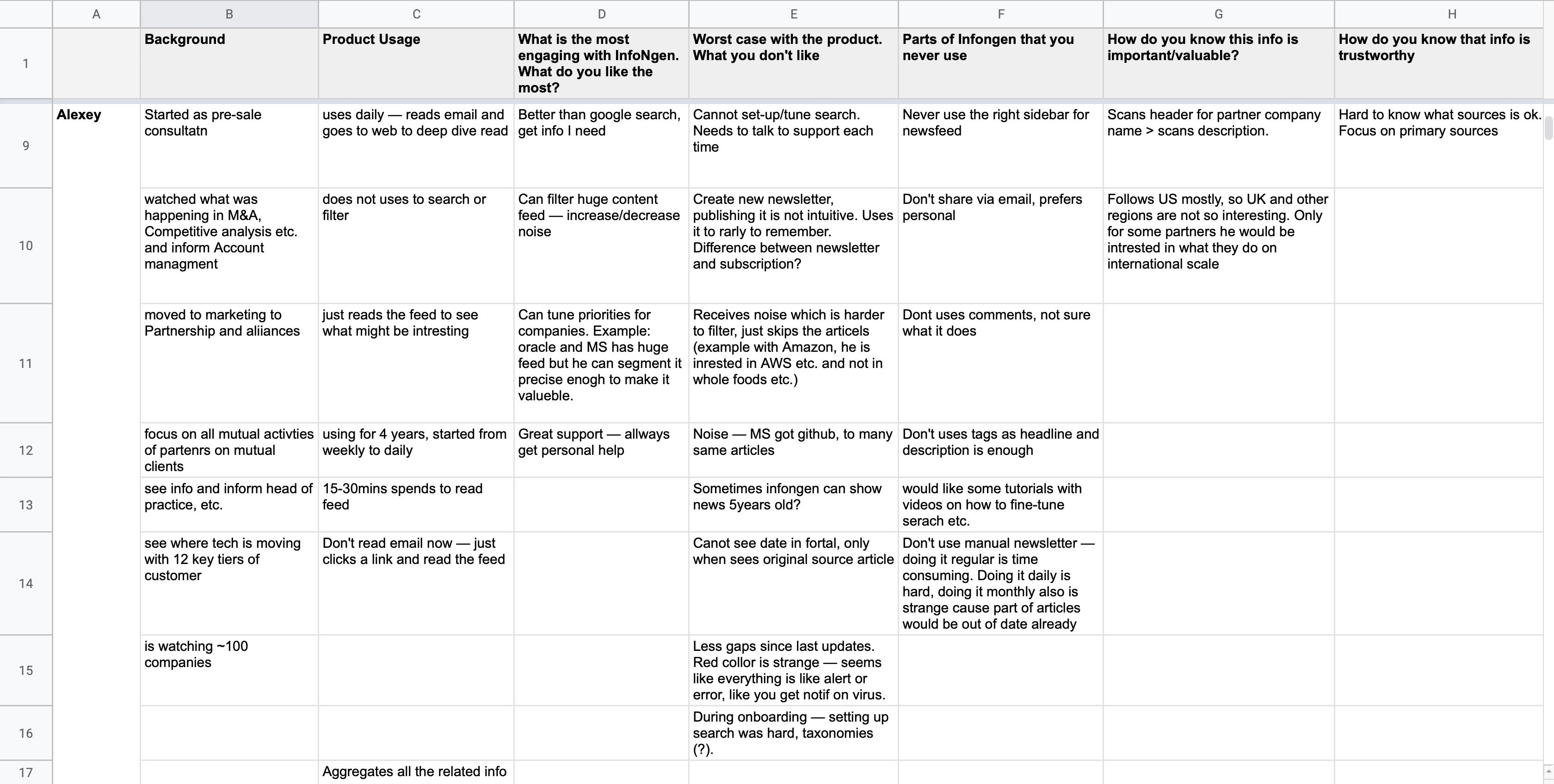 Having points like these helps a researcher focus and ask customers the right questions. I used this approach successfully many times. It allowed me to get a lot of actionable insights and have a more straightforward path to product-market fit. At the same time, it's easy to understand for people unfamiliar with product design processes.
