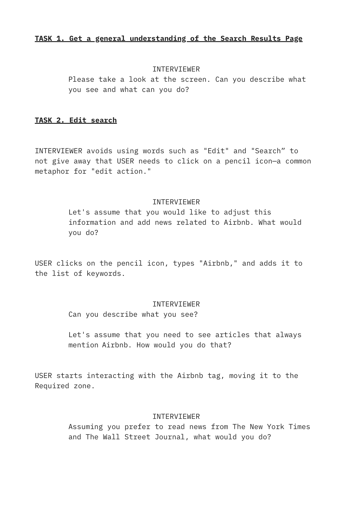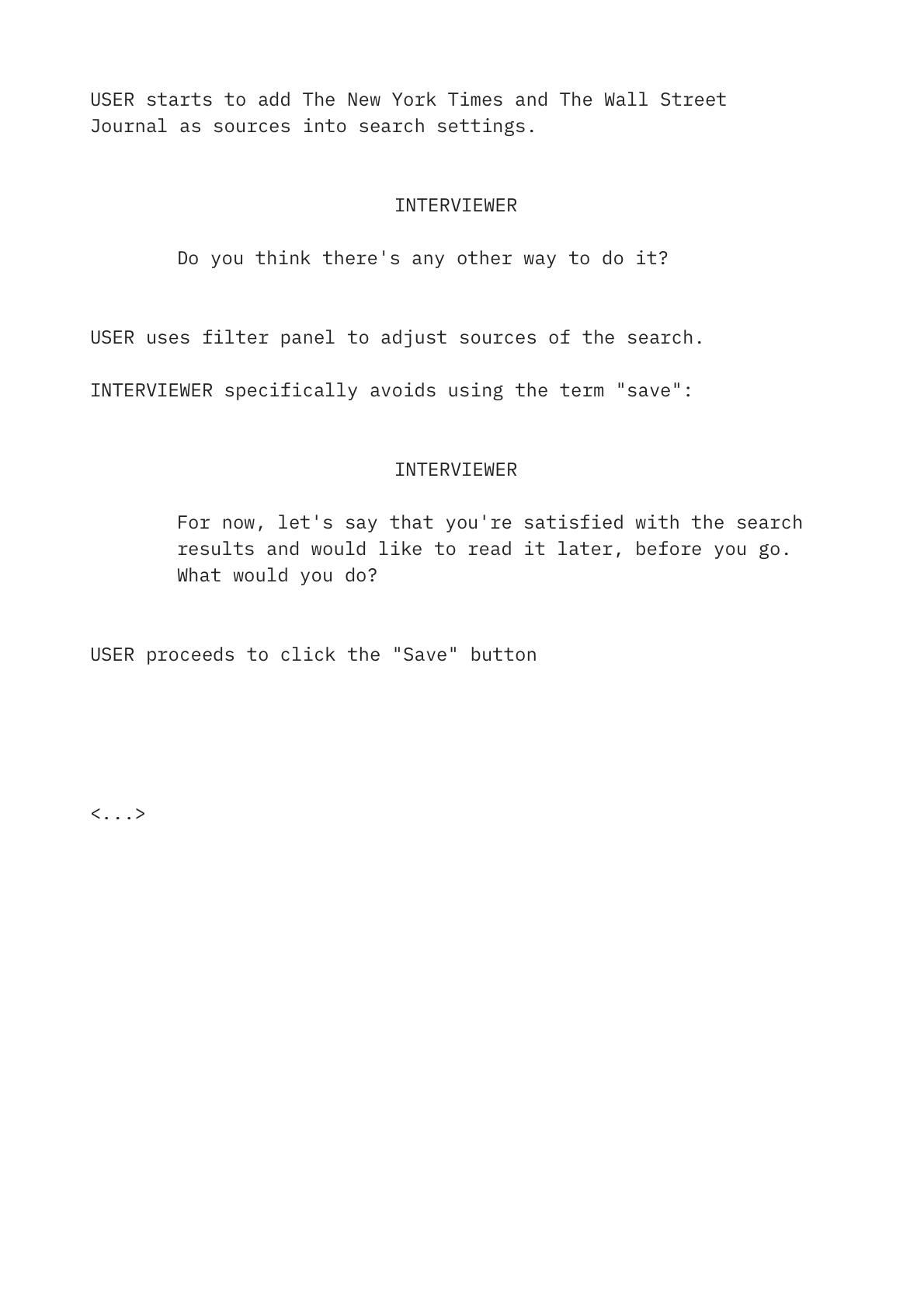 What is the goal of the testing? What am I trying to confirm or deny? I had a list of previously defined product goals and customer pain points that I tried to reduce. Setting up searches was the obvious scenario to test: it's the most crucial function of the product and the most challenging for our audience.