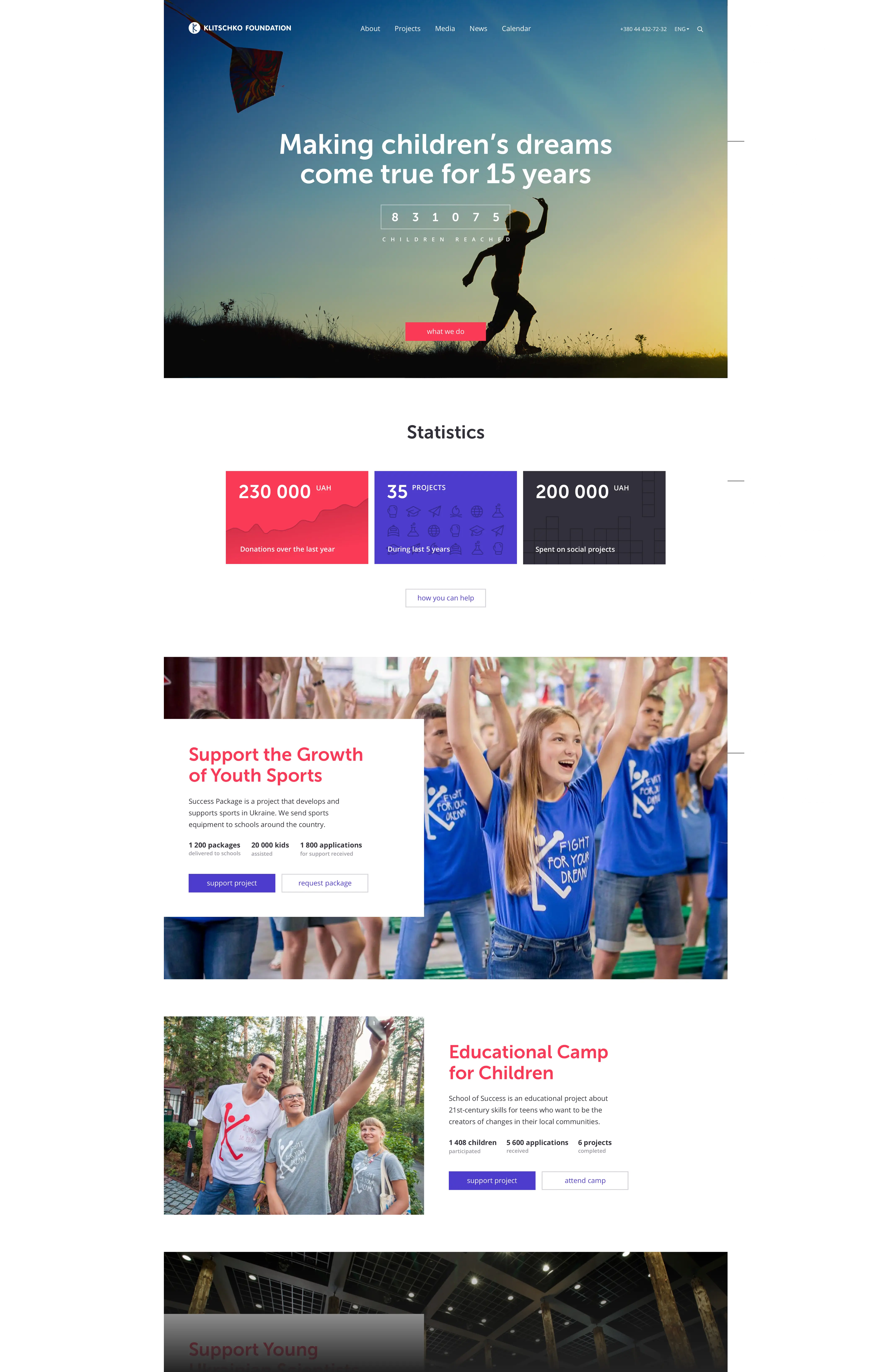 Before I was invited to help the organization, Klitschko Foundation already had a website. Yet unfortunately, it was dated and didn't work quite well. So the Foundation wanted to rebuild it. After discussions with the organization's leadership, we established the following goals: